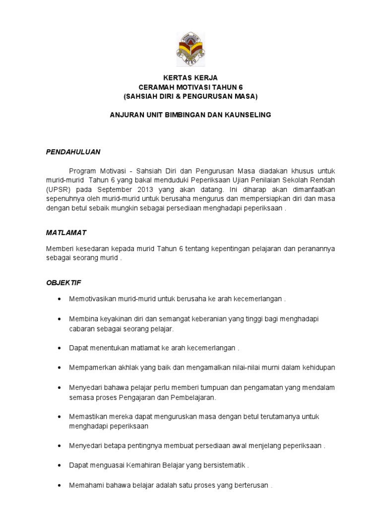 Kertas Kerja Ceramah Motivasi Tahun 6 Pdf
