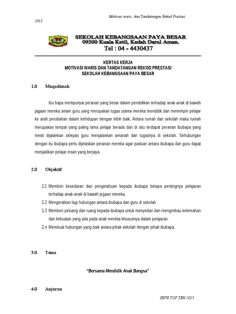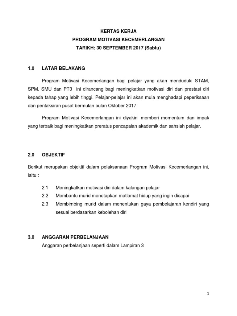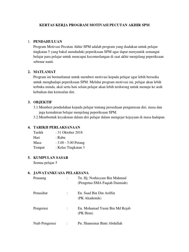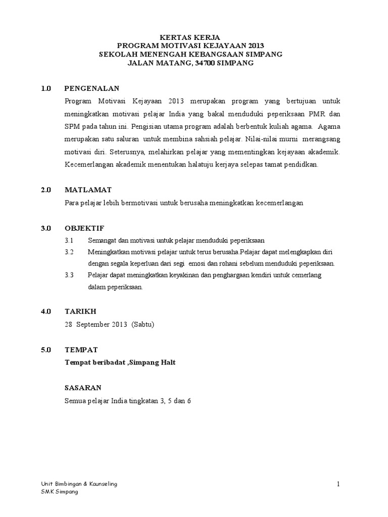 Contoh Kertas Kerja Program Motivasi Pdf